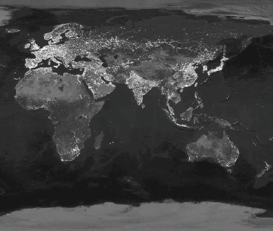 Abbildung 4 zeigt "Eurasien bei Nacht". Natürlich kann nicht überall in Eurasien gleichzeitig Nacht sein, aber dieses Bild setzt sich aus echten Satellitenfotos von verschiedenen Teilen Eurasiens bei Nacht zusammen. Man sieht die Wirkung der menschlichen Infrastruktur - in diesem Fall anhand der Lichter. Man sieht die Transsibirische Eisenbahn. Wer unsere Karten der Eurasischen Landbrücke kennt, sieht hier die Spuren einer sehr langen Entwicklung der eurasischen Gesellschaft und Zivilisation über Hunderte und Tausende von Jahren. Und man sieht die Bevölkerungskonzentration.